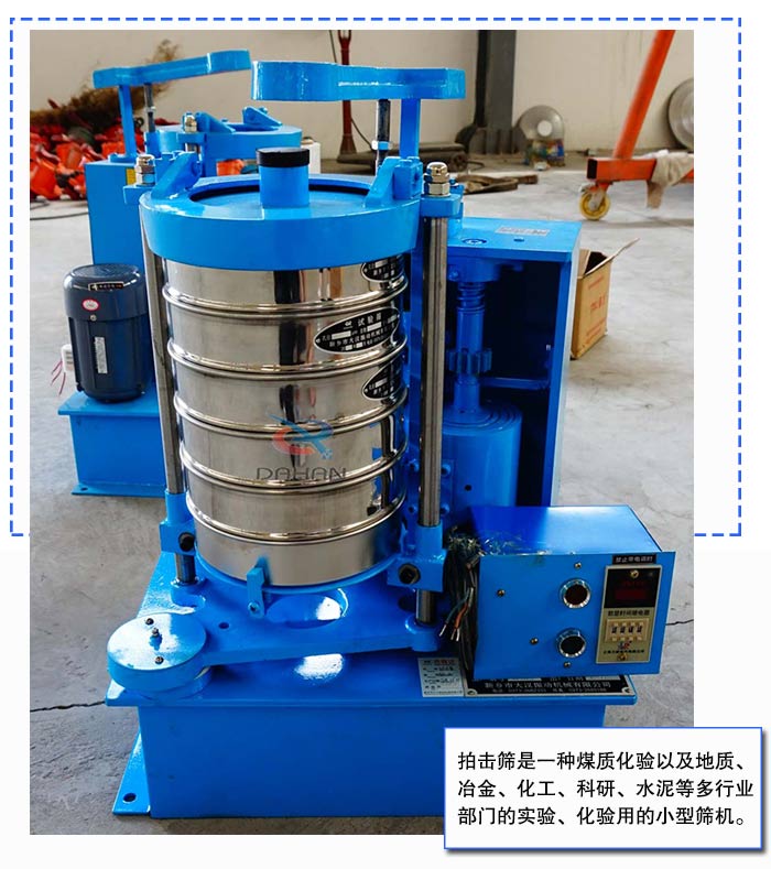 拍擊式振動(dòng)篩適用的行業(yè)有:地質(zhì)、冶金、粉體、化工、建工水泥、醫(yī)藥、國(guó)防等行業(yè),它的作用是在部門科研的物料進(jìn)行篩分檢測(cè)。