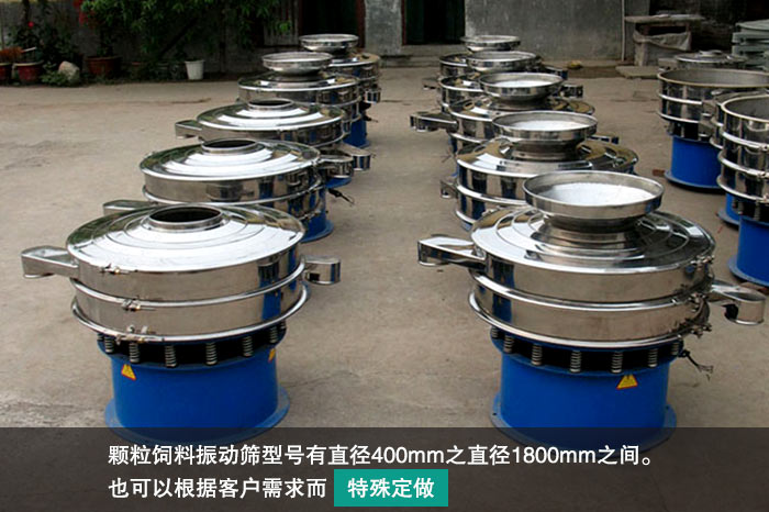 顆粒飼料振動篩型號有直徑400mm之直徑1800mm之間。也可以根據客戶需求而特殊定做。您可以根據您需要達到的產量需求來讓我們的業務經理為您推薦具體的型號。下表為顆粒飼料振動篩的型號規格技術參數