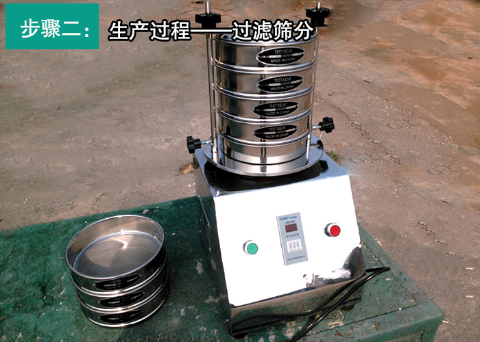 試驗篩可安裝1-6層篩框,將藥品分成2-7個等級。制藥過程中,對粉碎后的原料進行篩分,藥物粉碎后其顆粒多數不均勻,大多需要用設備對顆粒進行篩分、檢測。原料經粉碎后其顆粒粒度不均勻,需要篩分后才能進行混合。在藥物生產過程中,試驗篩在藥粉篩分中起到篩分達到合格物料粒度的作用。包括原料,生產過程種的顆粒,以及產成品的過濾篩分。具體步驟可分為一下三個: