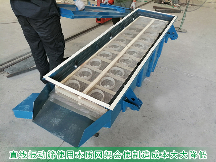 直線振動篩使用木質網架會使制造成本大大降低。相較鐵框網架而言,制造成本可降低10%。而就中小使用者來說,采購成本的節約就是生產總值的提升;