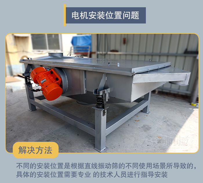 解決方法:不同的安裝位置是根據直線振動篩的不同使用場景所導致的,具體的安裝位置需要專業 的技術人員進行指導安裝。