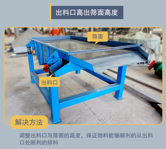 解決方法:調整出料口與篩面的高度,保證物料能夠順利的從出料口處順利的排料。